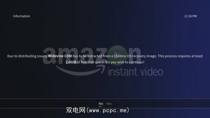 到目前为止,您已经安装了Plex,Amazon Video和Netflix。差不多可以了,但是在观看任何内容之前,必须先下载Widevine CMD解密模块。但是,您不能手动执行此操作;相反,它需要由Amazon或Netflix加载项完成。
