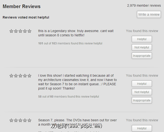 甚至更远向下,您将进入“评论"部分,Windows 8应用程序显然没有该部分,尽管您仍可以从该应用程序内的节目中给星级评分。如果您要查看任何节目或电影的评论,则需要Web版本。
