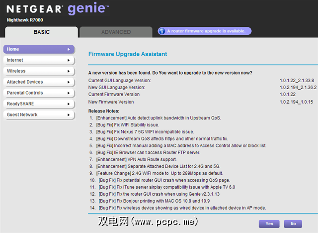 从屏幕截图中可以看到,只需单击“是"即可更新固件。该过程仍然是我处理过的最简单的过程之一。尽管某些路由器会自动更新,但差异相对较小。