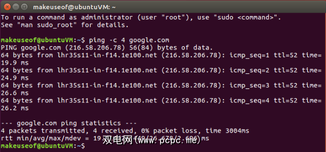 ping google.com...,则ping操作将无限期运行,直到您决定停止它为止。可以通过按键盘上的 Ctrl + C 来实现。