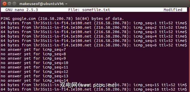 运行此命令后,似乎什么都没有发生,并且光标将连续闪烁。但是,此命令发生了两件事。有一个无限的ping运行,它将ping命令的输出传递到同一目录中名为someFile.txt的文件中。该文件可以打开并接受法医调查。默认情况下,当没有回复时,ping命令将不会显示。输入如上所示的 -O 选项。