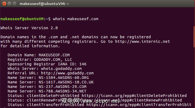 apt-get updateapt-get install whois一旦安装了 whois ,您只需查询任何域名即可获取更多信息: