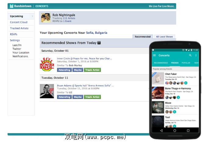 Bandsintown将自己描述为“巡回演出的第一名"。拥有超过1500万用户,这可能是正确的。连接到您的Facebook,Last.fm,Spotify和Deezer帐户后,您收到的演唱会建议将无懈可击。