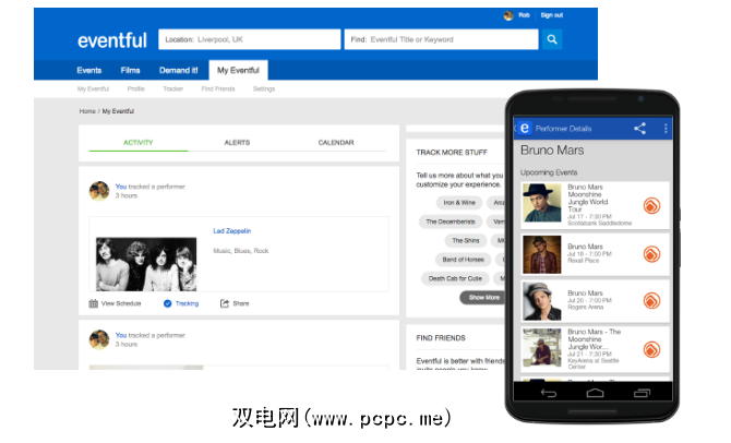 在Eventful上注册后,您可以选择跟踪您希望现场观看的任何艺术家(类似于JamBase)。然后,该服务将在下一次要在您的城市中播放被跟踪的歌手的情况下提醒您。为此,请转到我的活动,然后开始跟踪您喜欢的艺术家,场地和类别。