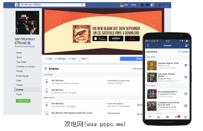 对于您在Facebook上喜欢的任何乐队或歌手,请转到其页面,然后单击事件标签。现在,有很多(但不是全部)艺术家在这里包括他们即将举行的演出。