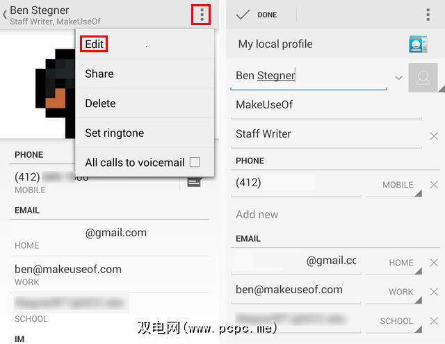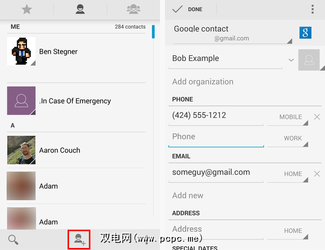 在下面的屏幕截图中,观察如何添加多个电子邮件和电话号码。实际上,您可以根据需要向每个联系人添加任意数量,例如“家庭",“传真"或通用的“其他"类别。即使创建了联系人,它还是可以更改的;只需在列表中找到它们即可(可以使用放大镜搜索),然后单击“编辑"以更改现有的联系人。