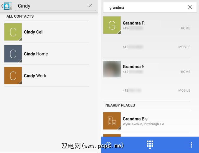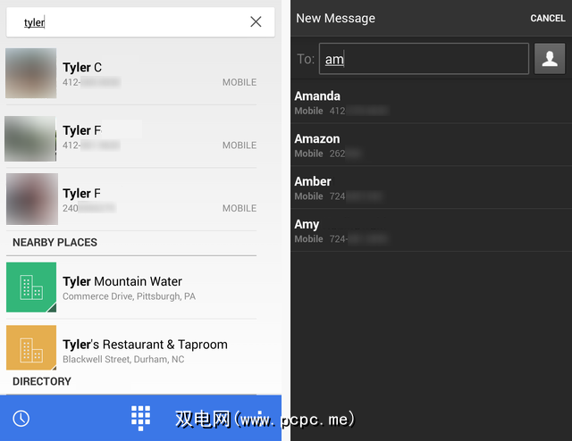一旦通讯录中有一些人,您就不必担心想给他们发短信或打电话时记住他们的电话号码。开始在一个字段中输入他们的姓名,您的电话将显示匹配的姓名。
