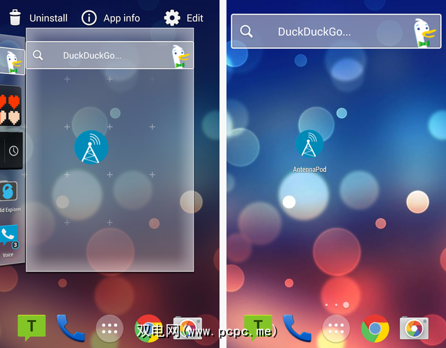 要将应用程序放置在主屏幕上以便于访问,您所要做的就是用手指按住并“拿起"。拿起它之后,您可以将其放在想要的主屏幕上的任何位置,如下所示。这样会创建一个快捷方式,可以在不影响实际应用程序的情况下对其进行移动或删除。