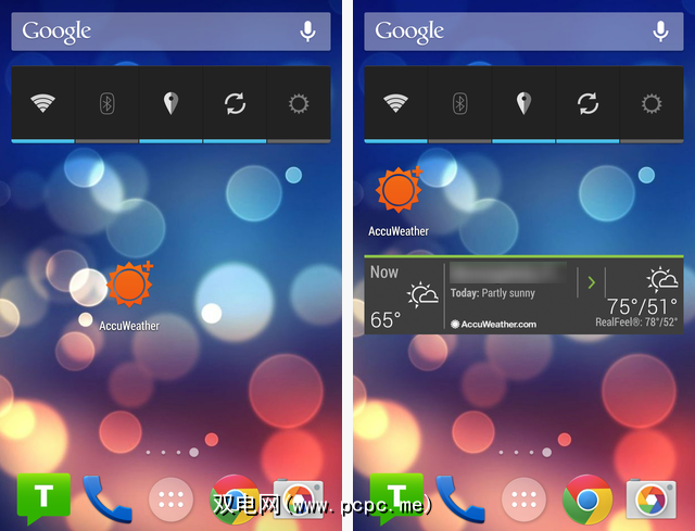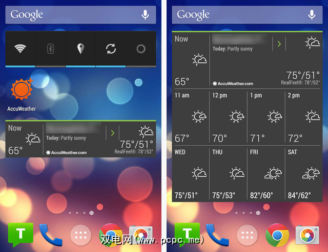 在Android上,许多应用程序都包含这些小部件以增强其功能。您必须使用一些应用程序才能看到哪些小部件可以使您受益,但让我们来看看它们如何为您节省时间。例如,以天气为例: