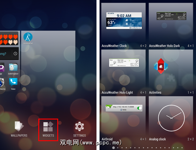 在手指上停留一会儿(这称为“ “长按"(而不是轻按)会弹出一个屏幕,询问您要添加到屏幕上的内容。我们目前对小部件感兴趣,因此继续选择该选项。