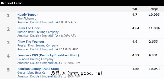 首先,侧边栏中有多个排名列表,突出显示了有趣的啤酒,例如“最新上市的顶级啤酒"和“当季顶级啤酒"。其次,论坛是在友好的环境中坐下来讨论啤酒的好地方。