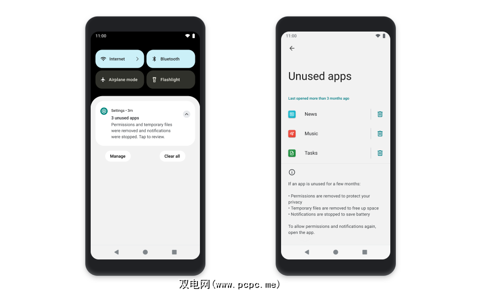 除了更快的启动时间,Android 12(Go 版)还承诺通过休眠一段时间未使用的应用程序来延长设备的电池寿命。这也将帮助您释放设备上宝贵的存储空间。每当未使用的应用程序休眠时,您都会自动收到通知。