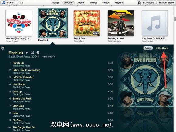 您可以在扩展视图中播放,随机播放和评价歌曲,以及是否要查看其他歌曲以及选定艺术家或乐队的专辑,您可以单击“ 在商店中"按钮,该内容将打开而不会带您离开音乐库。