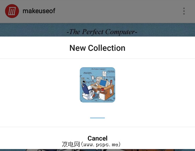 点击并按住书签按钮,将帖子添加到收藏集或为类似照片创建新收藏集。这是我见过的最好的书签解决方案之一。