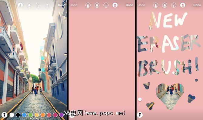 Instagram故事还添加了一个新的画笔:橡皮擦。这是另一个编辑图片的创意工具。