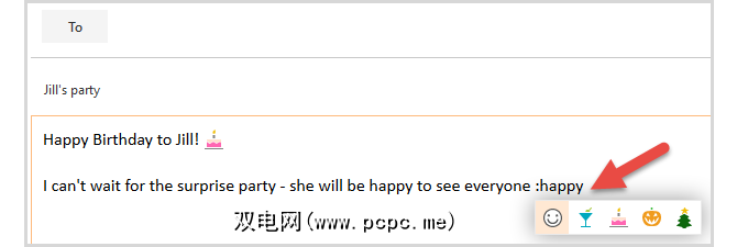 现在,您可以使用由您输入的文字。例如,如果您键入:happy ,:birthday 或:sad ,您将看到一个小的弹出框,其中包含建议的表情符号,您可以单击一下来插入。