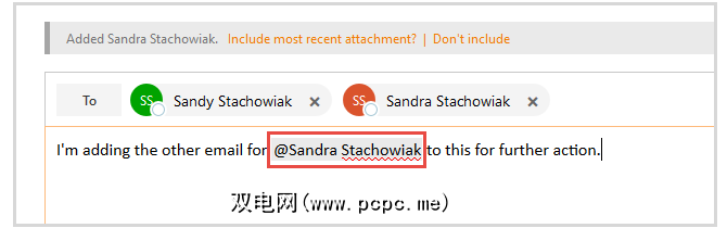 您可能还记得为桌面Outlook应用发布的一项名为“提及"的功能。这是Outlook.com中已添加的另一项功能,使您既可以轻松吸引邮件中的联系人,又可以将其电子邮件地址弹出到收件人行中。