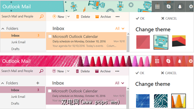 具有10多个新主题,您可以自定义使其具有一些天赋,您的Outlook.com收件箱。从机器人和电路到蜡笔和乐高积木,选择一个适合您的心情,兴趣或个性的主题。