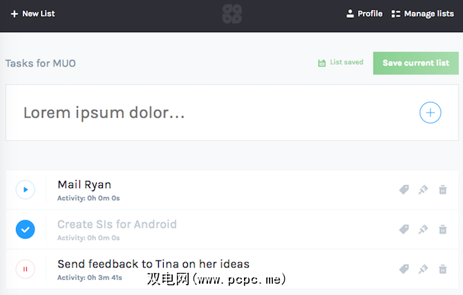 一旦待办事项列表出现在您的面前,请在任何任务上单击“播放"按钮以启动计时器。完成后,请点击“暂停"或将任务标记为完成以停止时钟。