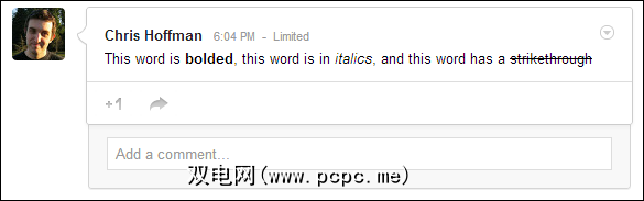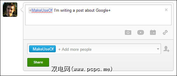 标记某人Twitter和Facebook使用@来在帖子中标记某人。但是,Google +使用+符号。例如,如果您想在帖子中标记我,则可以使用+ Chris Hoffman,而不是@Chris Hoffman。