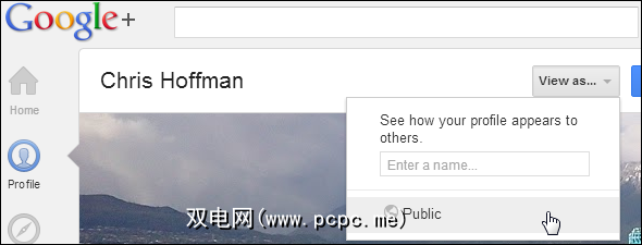 使用个人资料页面顶部的“查看方式"功能来查看您的圈子个人资料向公众显示。