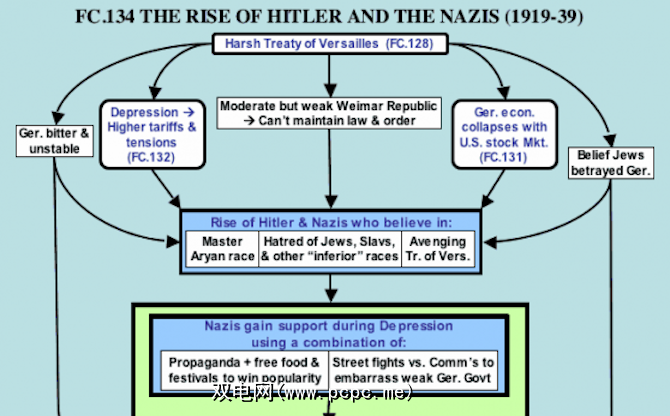 虽然我一开始有些怀疑,但实际上它的工作非常出色。以希特勒和纳粹崛起的流程图为例。它显示了凡尔赛条约的一系列事件,其结果导致希特勒在纳粹哲学的拥护者中崛起。而且,它还使您更进一步,显示了这些事件如何导致构成第二次世界大战的基础。