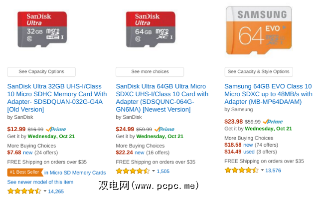 这些是您可以在亚马逊上期望的microSD卡价格。