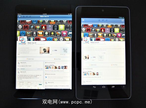 例如,Facebook应用程序。在iPad mini上,Facebook应用程序尽可能地模仿桌面布局。但是,在Nexus 7上,它只是为Android智能手机设计的爆炸性版本。