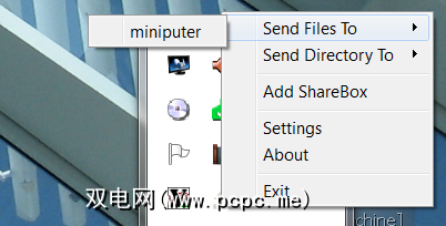 您可以通过两种方式进行操作发送一个或多个文件。您可以右键单击任务栏图标,然后找到要将文件发送到的计算机: