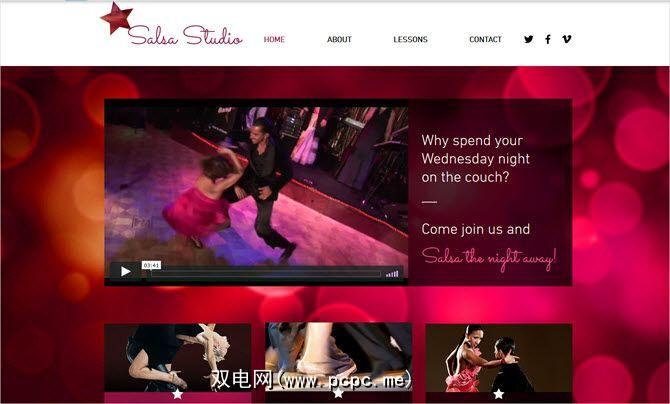 拉丁舞工作室是吸引注意力的模板。您可以在顶部添加视频,以进一步吸引访问者。活动详细信息可以放在主页上,也可以从顶部的简短导航中找到。