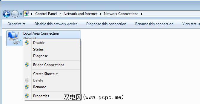 很遗憾,Windows 7中没有与此等效的程序,但是您可以模拟此重置的一部分。右键单击系统任务栏中的网络图标,选择打开网络和共享中心,然后单击更改适配器设置。然后,右键单击您正在使用的适配器,然后选择禁用。重新启动并重新启用它以查看是否能解决问题。