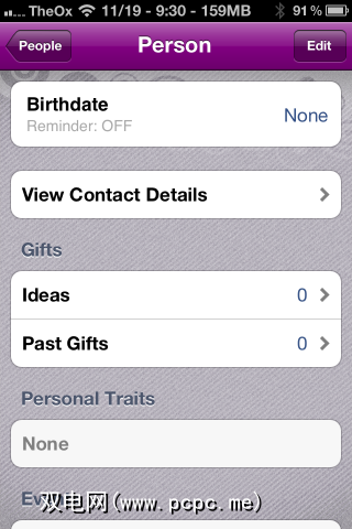 人员部分是您跟踪需要购买礼物的每个人的地方。您可以为每个人创建一个新条目,或从设备的联系人中选择他们。为需要购物的人创建条目后,您将可以跳至“事件"部分,并将每个人与事件链接。您还可以为列表中的每个人添加生日,这样您就永远不会忘记!