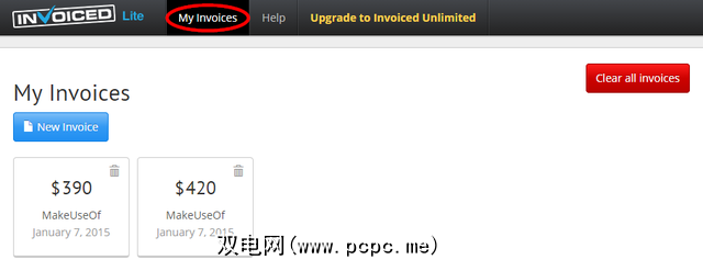 当您单击“下载"或“发送发票"按钮时,发票将保存在浏览器的本地存储中(缓存) )。通过单击顶部的“ Invoiced Lite"徽标旁边的黑色栏中的“我的发票",可以访问已保存的发票。如果您必须在将发票发送给客户之前或之后对发票进行更改,这是一个很棒的功能。