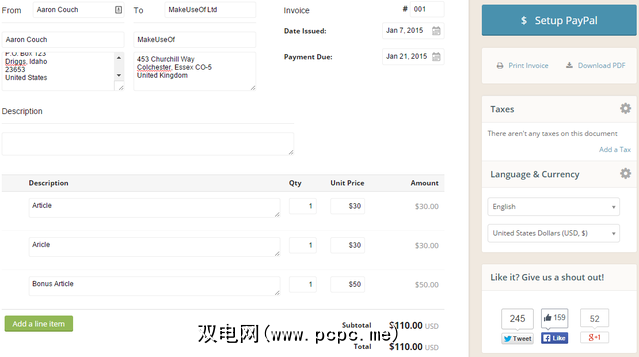 网络上有一些很棒的免费发票管理器,例如Invoiceable,这是小型企业的理想发票解决方案。但是,本文中的关键字是 quick 。您不想麻烦输入信息,验证帐户和电子邮件等。您只想创建一张发票,这是这四个高度推荐的网站可以让您完美完成的事情。