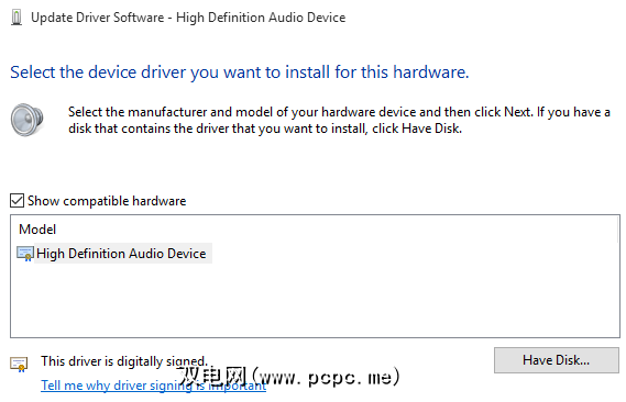 在型号下,选择高清晰度音频设备,然后选择下一步,然后是是。您可能需要重新启动系统才能使更改生效。