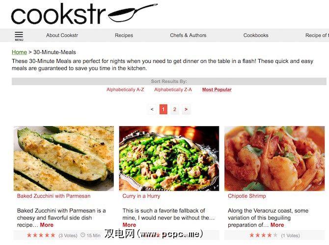 Cookstr具有庞大的食谱数据库,并致力于成为在线上最大的食谱集。因此,他们的食谱可以发挥所有技能水平。但是,可以在站点顶部的“ 30分钟用餐"标签下找到许多简单的食谱。