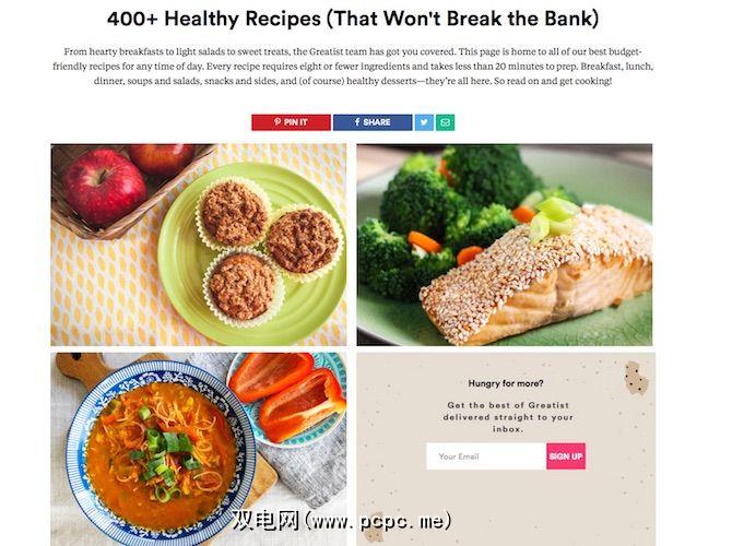 Greatist的这次综述是一个了不起的资源。这个网站上有超过400种食谱,而且所有食谱都是用八种或更少的食材制成的,准备只需二十分钟(甚至更少!)。