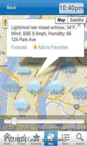 该应用程序可通过以下网址用于iOS和Android:他们各自的应用商店。下载并安装该应用后,您可以移动滑块以查看地图上某个区域(例如城市,城镇)内特定区域的天气信息,或者以列表模式查看。