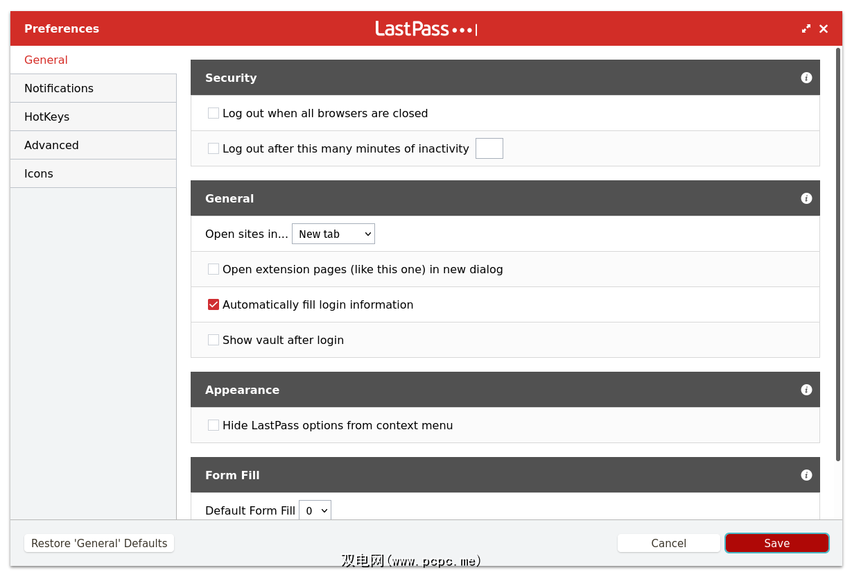 即使 LastPass 设法提供更细粒度的扩展首选项,它也没有提供深色主题,也没有提供永不退出会话的选项。对于使用受信任系统的人来说,不重复登录密码管理器可以节省时间。
