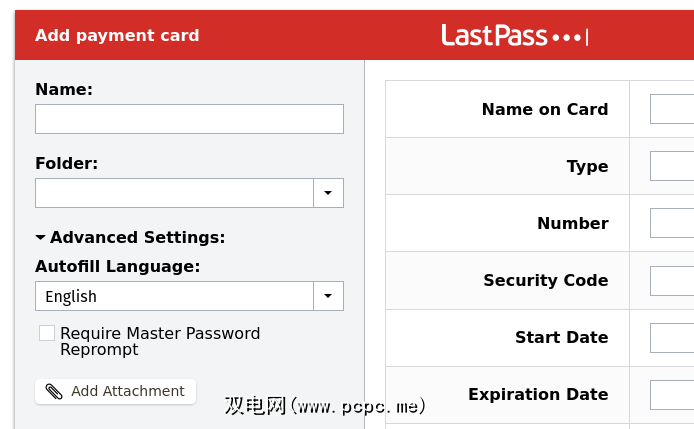 如果您想添加信用卡条目,NordPass 不允许您添加附件,但 LastPass 可以。