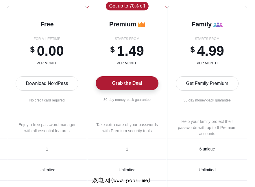 NordPass 的高级套餐起价更便宜,个人每月只需 1.49 美元,拥有六个独特帐户的家庭每月订阅费用更贵 4.99 美元。