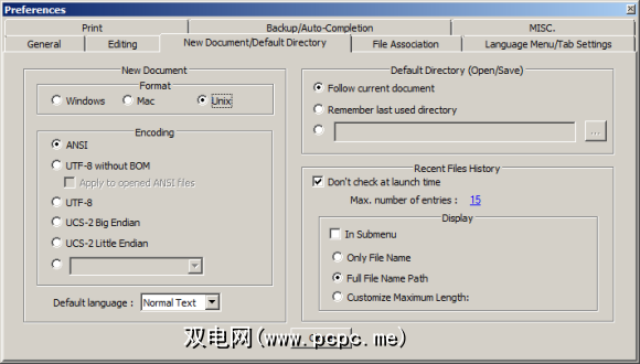 安装并加载后,打开设置>首选项>新建文档/默认目录,然后选择< em> UNIX 单选按钮。单击关闭,然后单击 CTRL + N 以启动新文件。在文件中,添加以下内容:
