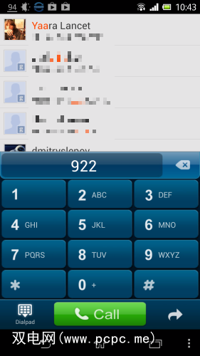 开始点按某人的姓名,然后就会显示其号码。当然,您也可以从他们的号码开始拨几个数字。接下来是“联系人"标签: