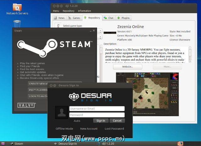 不仅预装了很多开源游戏(我在Windows的“游戏"部分中统计了87个条目)应用程序菜单),但还包括Steam。只需启动Steam并登录,即可立即开始下载游戏。有Desura的安装程序,但是如果需要,您需要安装所有其他游戏发行服务。