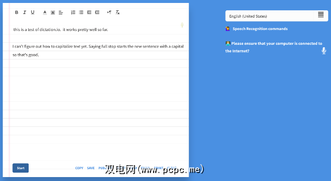 使用该应用程序非常简单。启动它,选择您要说的语言,然后单击“开始"按钮开始讲话。 Dictation.io会听您说的话,然后在记事本中将其变成书面句子。除了罗马字母外,它还可以采用其他脚本的听写功能,例如Espanol,俄语,阿拉伯语,印地语,日语等。
