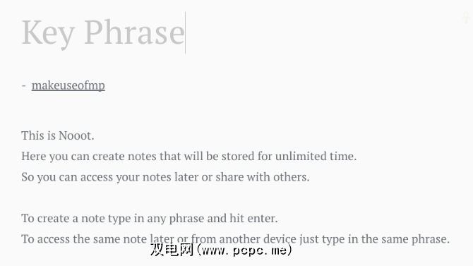 这里是它的工作方式。转到该站点,然后选择一个唯一的URL,以在Nooot提供的框中键入内容。如果成功,那就是您的记事本,从此永久保存。是的,它是完全免费的。任何时候您要访问该记事本,只需转到Nooot,然后在框中再次键入它即可。简单吧?另外,您可以根据需要制作任意数量的记事本。