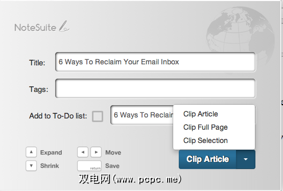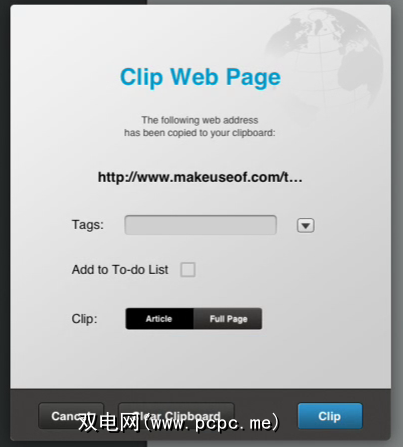 与Evernote相似,NoteSuite for Mac还包含可从中访问的Web剪辑功能。不幸的是,使用已安装的浏览器扩展程序的Safari,Chrome或Firefox工具栏。