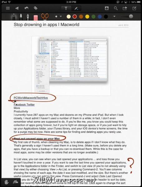 钢笔工具可以正常工作且平滑,但我很惊讶该应用程序中缺少一个简单的荧光笔菜单栏。对于PDF文档,NoteSuite还包含用于查看缩略图,完整目录(如果在文档中可用)和书签的功能。 Mac版本中缺少这些功能。