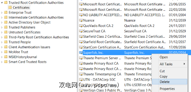 但是它的作用还不止于此。它注入了一个自签名的根HTTPS证书,该证书允许他们劫持所有加密的流量。 HTTPS使在线银行和在线购物变得安全,而SuperFish有效地打破了这一局面。