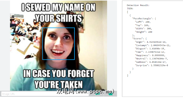 您需要访问此页面才能访问Microsoft的Project Oxford Emotion API。从那里,您可以上传自己的图像(或输入图像URL来从互联网提取图像),经过几秒钟的分析和计算,您应该会看到情绪数据。